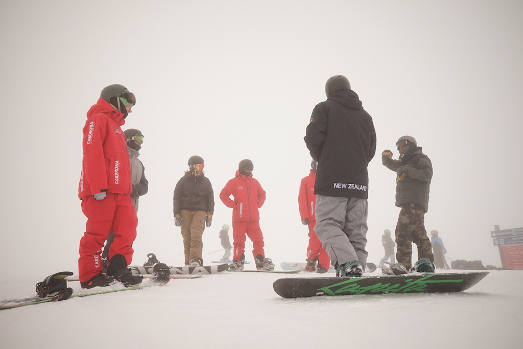 On Wednesday this week, the whole NZSIA and SBINZ Interski Team got together at Treble Cone. Over on the ski side of things, the team has been working hard on their demos, which snowboard will join in for one run. In this one run, we’ll be showcasing a few of our Level Three riding tasks and, depending on the jumps options on the side, putting in a little extra freestyle flavour.